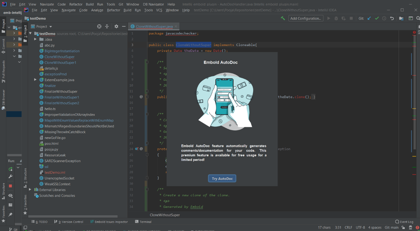 - Embold generates Java docs that help to produce a set of documentation comments for a method. This implementation delivers you faster and accurate results.