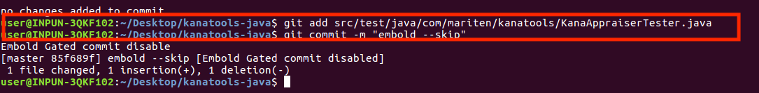 git commit -m "Committing changes" embold --skipRequired flag: