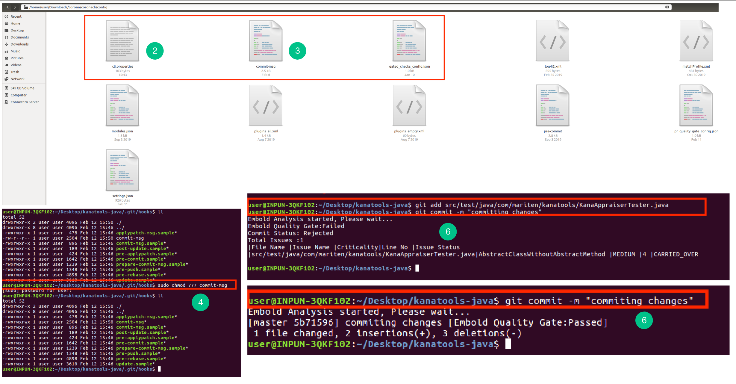 commit-msgfrom$EMBOLD_SCANNER_HOME/config/commit-msgto<baseDir>/.git/hooks/Verify both scripts are executable.