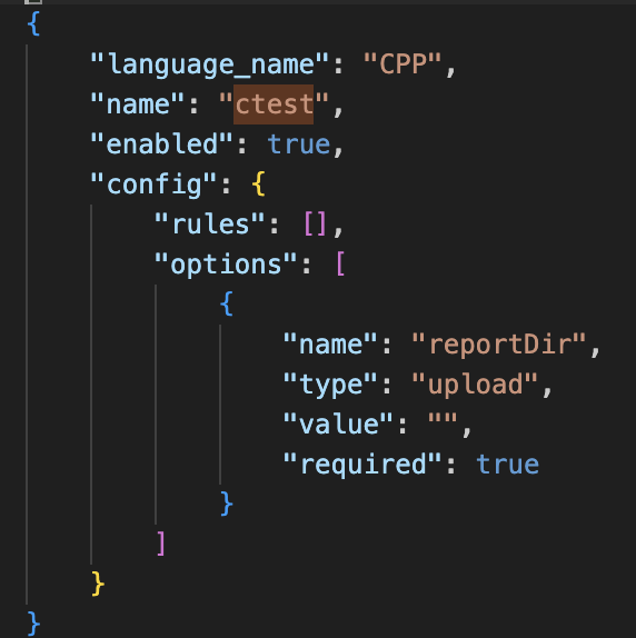 -c. - In the repository configuration JSON, the ctest module is enabled by default, and the value for